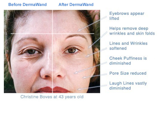 DermaWand uses the same technology as the big radio frequency machines that Doctors and Medical Specialists use for treatments to help manage the signs of premature aging. The difference: DermaWand uses lower amplitude that's perfect for everyday in-home use. Like the big machines, DermaWand provides instant stimulation, thereby providing a massage effect while at the same time delivering thermal energy and enriched oxygen. The results - younger looking skin with only 2 three minute treatments a day. Best of all, you can do it in the comfort of your own home at a fraction of the cost of going to a doctor!